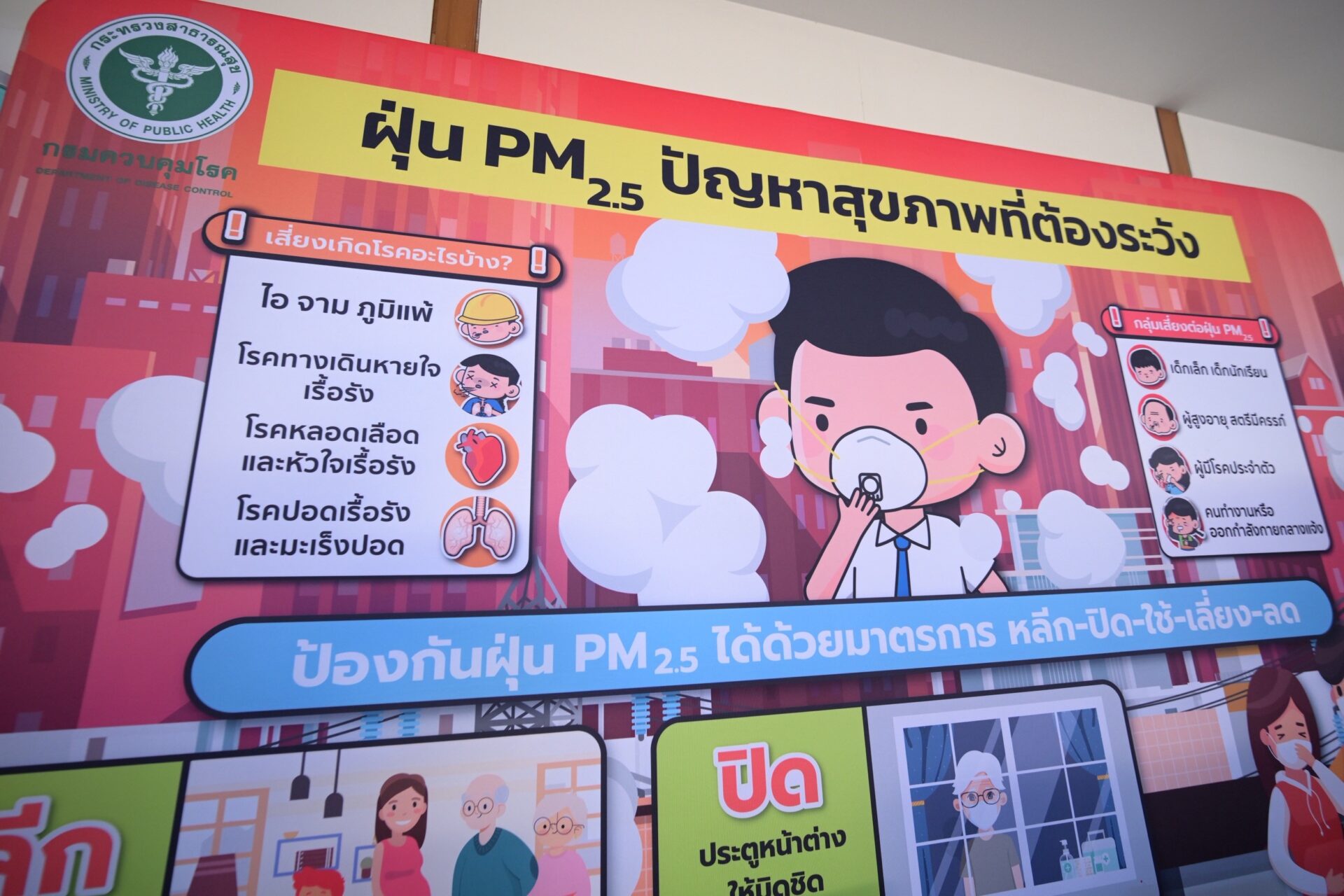 ดร.สุรินทร์ วรกิจธำรง อธิบดีกรมควบคุมมลพิษ กระทรวงทรัพยากรธรรมชาติและสิ่งแวดล้อม กล่าวว่า แหล่งกำเนิดหลักของฝุ่นละอองมาจากการเผาในที่โล่ง ยานพาหนะ อุตสาหกรรม รวมถึงหมอกควันข้ามแดน ดังนั้นการแก้ปัญหาที่เป็นปัญหาเชิงระบบ ไม่สามารถแก้ไขได้โดยหน่วยงานใดหน่วยงานหนึ่ง แต่ต้องอาศัยความร่วมมือจากทุกภาคส่วน เพื่อจัดการที่ต้นเหตุอย่างยั่งยืน ซึ่งกรมควบคุมมลพิษจะเดินหน้าพัฒนาเครือข่ายสถานีตรวจวัดคุณภาพอากาศเพื่อเฝ้าระวัง คาดการณ์ล่วงหน้า และแจ้งเตือนประชาชนอย่างรวดเร็ว เข้าถึงทุกกลุ่มเป้าหมาย ใช้นวัตกรรม เทคโนโลยี และ AI มาเสริมการทำงานให้ตอบสนองต่อสถานการณ์ได้อย่างทันท่วงที ตลอดจนพัฒนาปรับปรุงมาตรฐาน มาตรการ กฎหมายให้ทันสถานการณ์ เพื่อเป้าหมายร่วมคือการทำให้อากาศสะอาดเป็นสิ่งที่ประชาชนทุกคนเข้าถึงได้