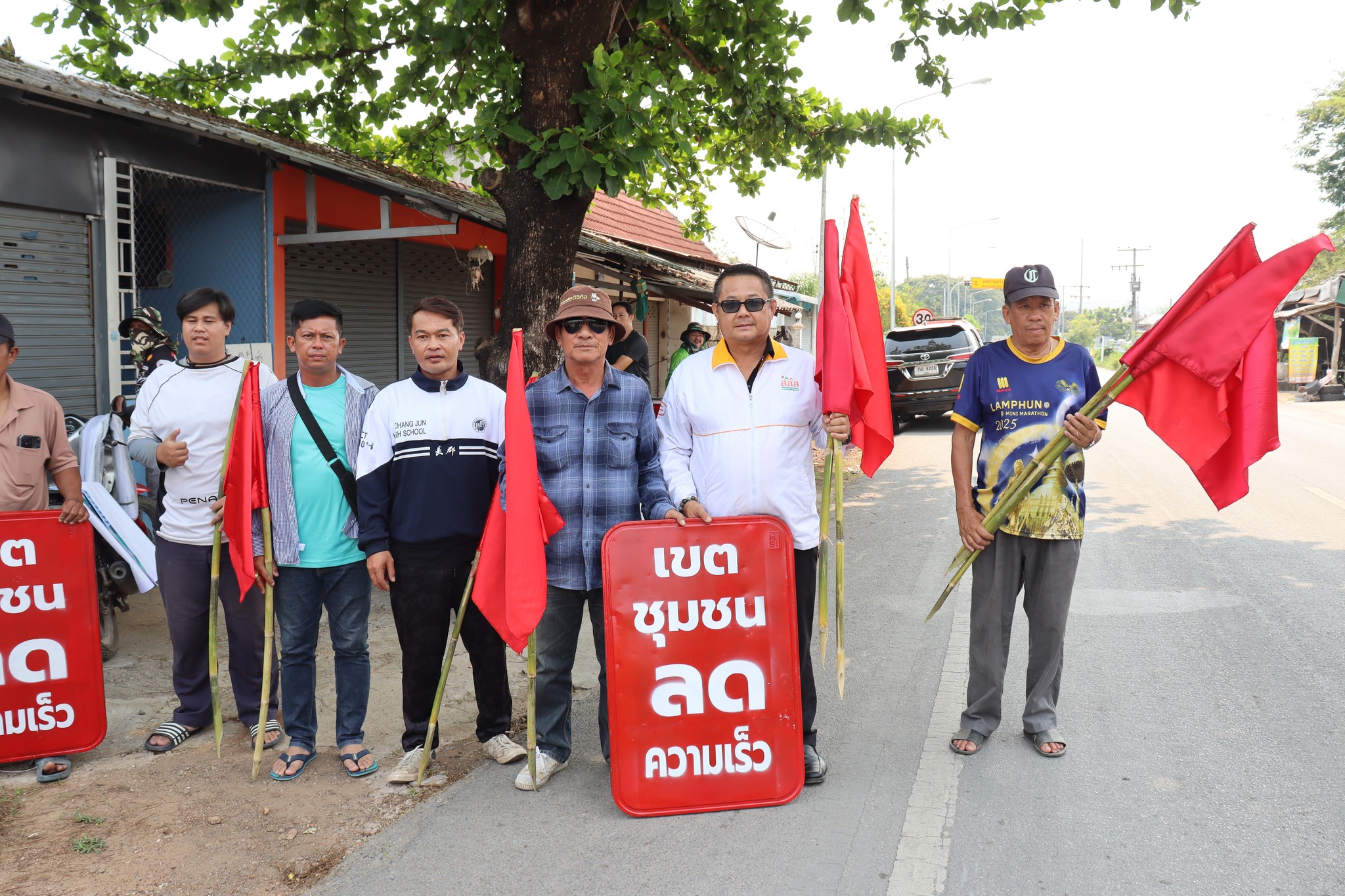 น.ส.ปัทมา มีพลู ปลัดองค์การบริหารส่วนตำบลหนองหนาม ต.หนองหนาม อ.เมือง จ.ลำพูน หนึ่งในพื้นที่ที่เข้าร่วมโครงการ กล่าวว่า อบต.หนองหนาม ได้นำข้อมูลจุดเสี่ยงในพื้นที่มาวิเคราะห์ ร่วมกับภาคีในระดับท้องที่ กำนัน ผู้ใหญ่บ้าน ระดับท้องถิ่น ภาคประชาชน และโรงพยาบาลส่งเสริมสุขภาพชุมชน โรงพยาบาลลำพูน สถานศึกษาในพื้นที่ พบว่าถนนเลี่ยงเมืองลำพูน หมายเลข 116 ซึ่งเป็นถนน 2 เลนที่ตรงยาว และมีพฤติกรรมขับเร็วของผู้ใช้ทาง ทั้งจากคนในพื้นที่และผู้เดินทางระหว่างจังหวัด มีจุดอันตรายจากรถบรรทุกจอดขวางไหล่ทาง ปั๊มน้ำมันหลายแห่งที่รถเข้า-ออกตลอดเวลา และซอยต่าง ๆ ที่ผู้ขับขี่มักไม่ชะลอความเร็ว จึงร่วมมือกับชุมชนจัดมาตรการ เช่น ติดธงแดง เตือนจุดเสี่ยง ป้ายเตือนความเร็ว เพิ่มไฟส่องสว่าง และจัดเวรเฝ้าระวังร่วมกับเครือข่ายในพื้นที่ สงกรานต์ 2568 นี้ ต.หนองหนาม ได้จัดแคมเปญรณรงค์ลดอุบัติเหตุในพื้นที่ เช่น “ดื่มไม่ขับ” และ “ส่งคนรักกลับบ้าน” ด่านชุมชนบริการ น้ำสมุนไพรรางจืด-ผลไม้เปรี้ยว และใช้แนวคิด 3 ต. เตรียมตัว ติดตั้ง ติดตาม 3 ม. ไม่เมา ไม่ขับ ไม่เร็ว 2 ช. เช็กคน เช็กรถ จัดตั้ง “จุดพักคนเมา” พร้อมมะขาม กาแฟ และเช่าหมวกกันน็อก