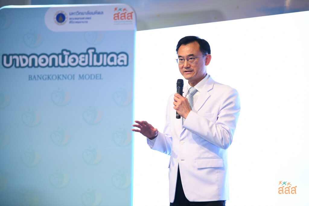 เมื่อวันที่ 8 มิ.ย. 2566 ณ อาคารเฉลิมพระเกียรติ ๘๐ พรรษา ๕ ธันวาคม ๒๕๕๐ รพ.ศิริราช คณะแพทยศาสตร์ศิริราชพยาบาล ม.มหิดล ร่วมกับสำนักงานกองทุนสนับสนุนการสร้างเสริมสุขภาพ (สสส.) แถลงข่าว “ศิริราชรุกเข้าถึงชุมชน เพื่อแก้ไขปัญหาสุขภาพอย่างยั่งยืน ในโครงการบางกอกน้อยโมเดล 2” เพื่อตอบโจทย์การเปลี่ยนแปลงที่เกิดขึ้นอย่างรวดเร็ว ในเชิงโครงสร้างประชากรที่เปลี่ยนไป ส่งผลต่อการเกิดโรคอุบัติใหม่ และโรคอุบัติซ้ำ ระบบสาธารณสุขควรรองรับโครงสร้างประชากร คณะแพทยศาสตร์ศิริราชพยาบาลจึงริเริ่มการเตรียมความพร้อมเชิงระบบ ในพื้นที่ชุมชนกึ่งเมือง เพื่อเป็นต้นแบบเมืองสุขภาพดี (Healthy City) ชุมชนสุขภาพดี (Healthy Community) โดยเริ่มนำร่องในพื้นที่บางกอกน้อย
