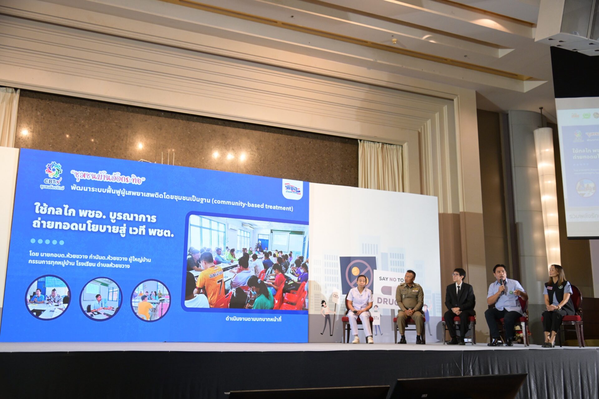 ที่มา: เวทีประชุมเชิงปฏิบัติการเพื่อพัฒนาศักยภาพพลังอำเภอสู่การเป็นอำเภอต้นแบบและอำเภอขยายผล ในการขับเคลื่อนชุมชนล้อมรักษ์ (CBTx) และแก้ไขปัญหายาเสพติดอย่างยั่งยืน