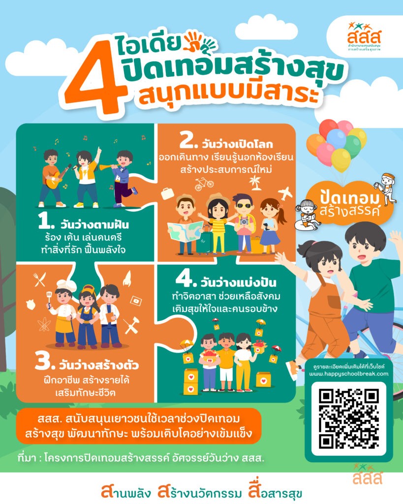 อินโฟกราฟิก เด็ก เยาวชน และครอบครัว 4 ไอเดีย ปิดเทอมสร้างสุข สนุกแบบมีสาระ