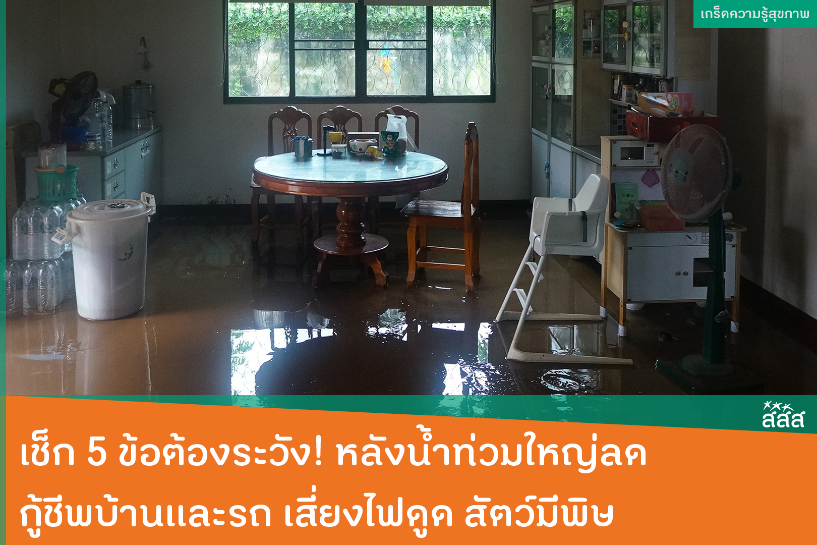 30 พฤศจิกายน 2568 5 ครั้ง เมื่อสถานการณ์น้ำท่วมเริ่มดีขึ้นในหลายพื้นที่ แต่ช่วง “หลังน้ำลด” ยังเสี่ยงหลายอย่าง ทั้งไฟฟ้าดูด รถพังจากการใช้งานผิดวิธี รวมถึงปัญหาสุขภาพ อ่านต่อ