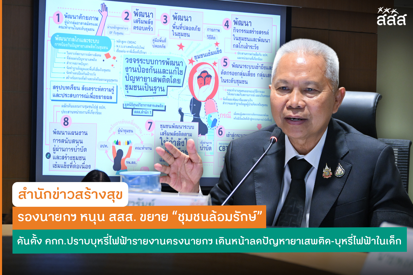 19 พ.ย. 68 121 ครั้ง รองนายกฯ หนุน สสส. ขยาย “ชุมชนล้อมรักษ์” ดันตั้ง คกก.ปราบบุหรี่ไฟฟ้ารายงานตรงนายกฯ เดินหน้าลดปัญหายาเสพติด-บุหรี่ไฟฟ้าในเด็ก “รองนายกฯ โสภณ” หนุน สสส. ขยายผล “ชุมชนล้อมรักษ์” เล็งยกเครื่องกฎหมายยาเสพติด-บุหรี่ไฟฟ้า เสนอ ครม. ตั้ง คกก.ปราบบุหรี่ไฟฟ้า รายงานตรงนายกฯ ลดข้อจำกัดทางกฎหมาย