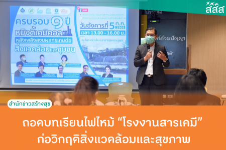 05 ก.ค. 65 3,619 ครั้ง สสส. - กสม. ผนึก 5 ภาคีเครือข่าย เปิดเวทีถกปัญหามลพิษอุตสาหกรรม กรณีครบรอบ 1 ปี โรงงานหมิงตี้เคมิคอลระเบิด หลังเพลิงสงบ ก่อวิกฤติผลกระทบต่อสุขภาพ เสี่ยงตาย-ป่วย 388 คน หวั่นเหตุซ้ำรอย รุกดัน โรงงานต้องขออนุญาตถูกต้อง อุบัติภัยฉุกเฉินประชาชนต้องได้รับการเยียวยา