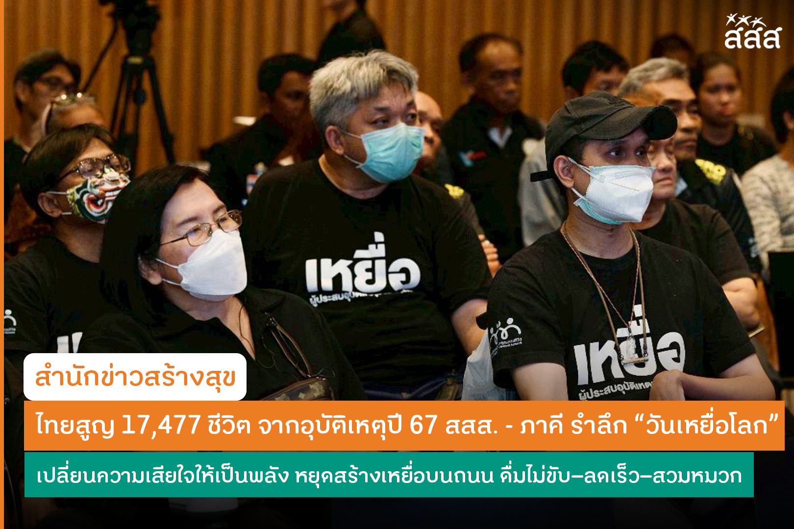 14 พ.ย. 68 61 ครั้ง รำลึก “วันเหยื่อโลก” สสส. สานพลังเครือข่ายผู้สูญเสียจากอุบัติเหตุทางถนน “เปลี่ยนความเสียใจให้เป็นพลัง หยุดสร้างเหยื่อบนถนน”